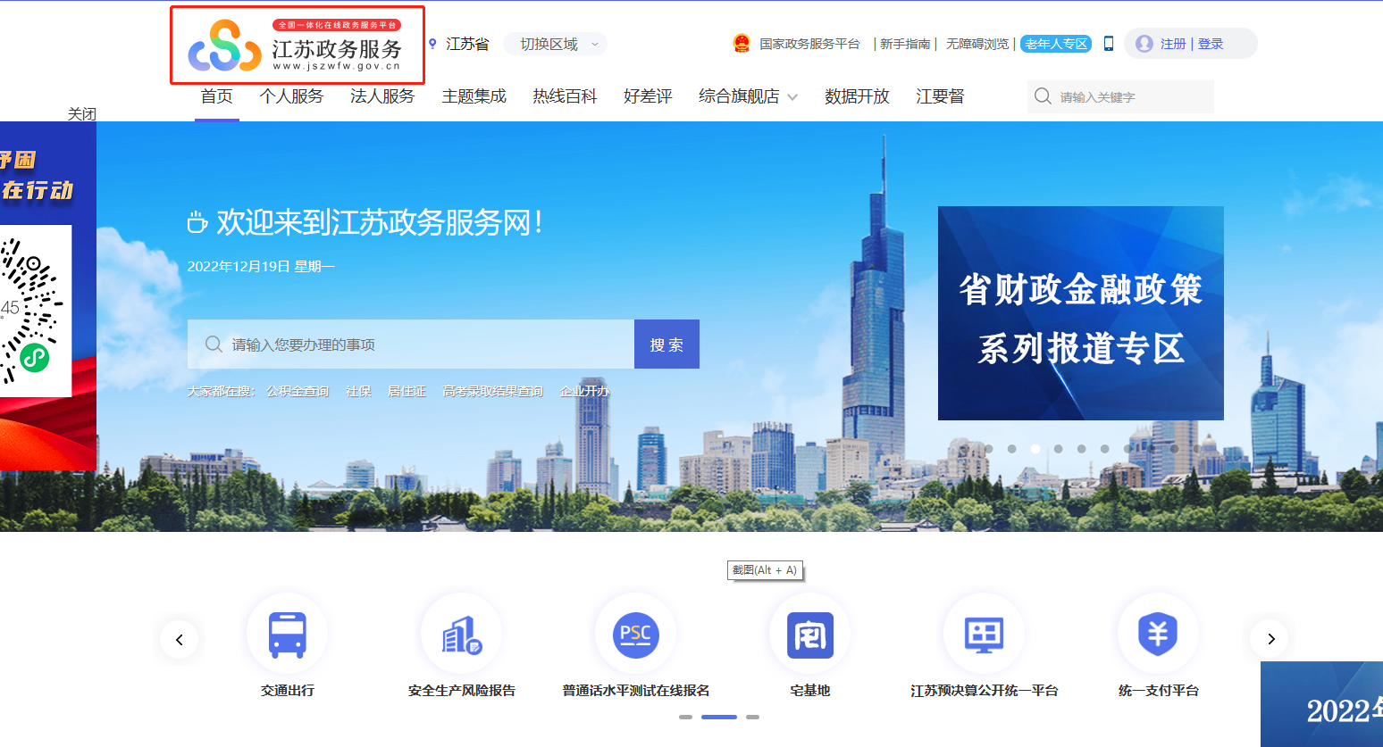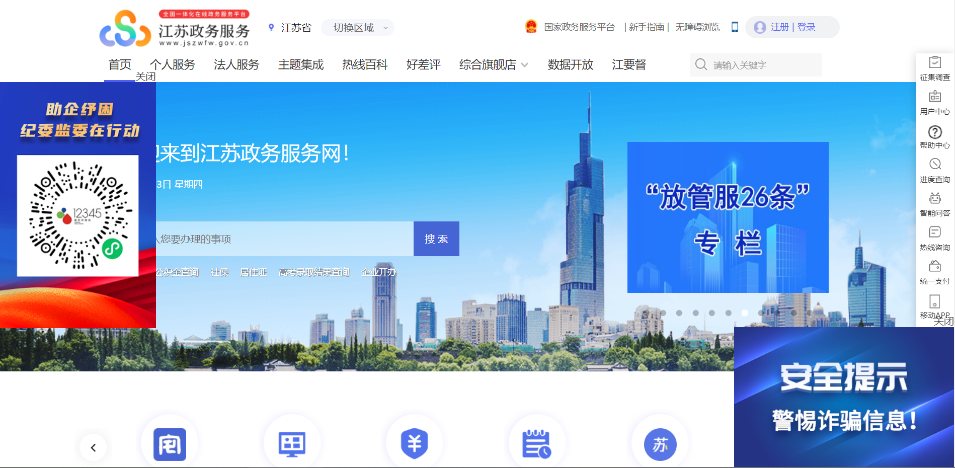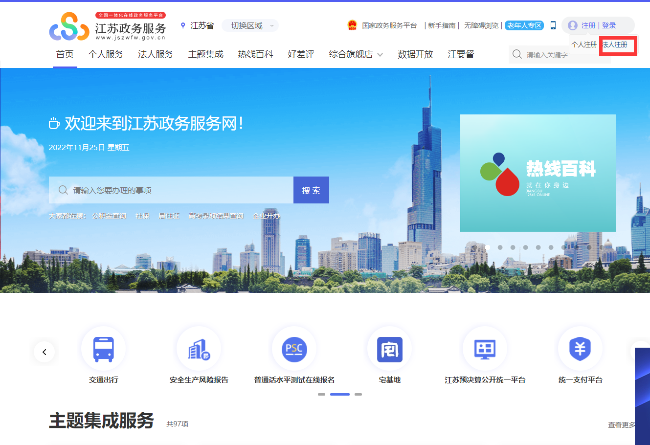 一、注册江苏政务网(如已注册政务网账号,请直接从二、开始操作)