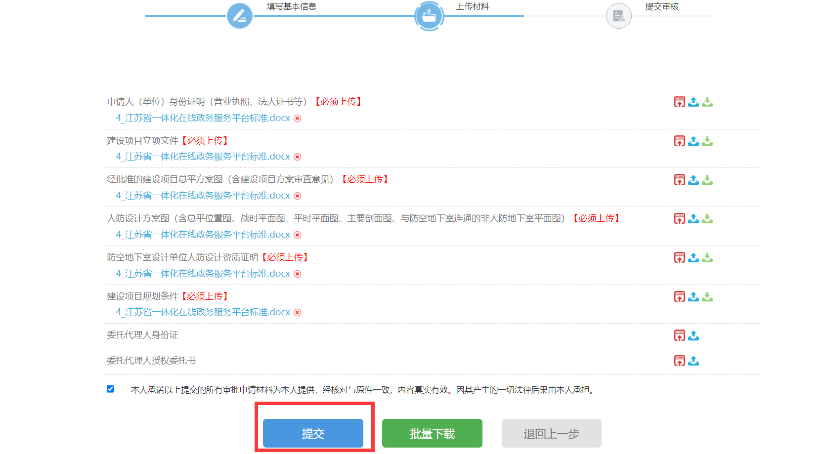 5、上传材料信息并点击提交
